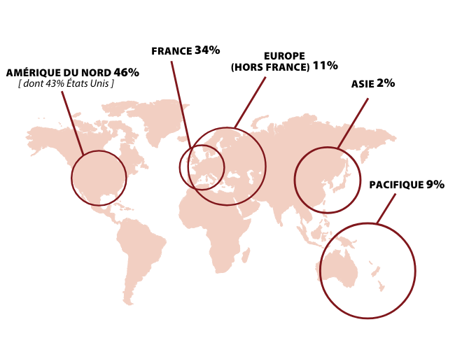 L’hébergement représente environ 57% des dépenses touristiques (en 2023 : ISPF).