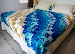 Le fabricant d’articles décoratifs réalise des tifaifai , patchworks, tissus appliqués, coussins, drapeaux, nappes, couvertures… Il utilise différentes