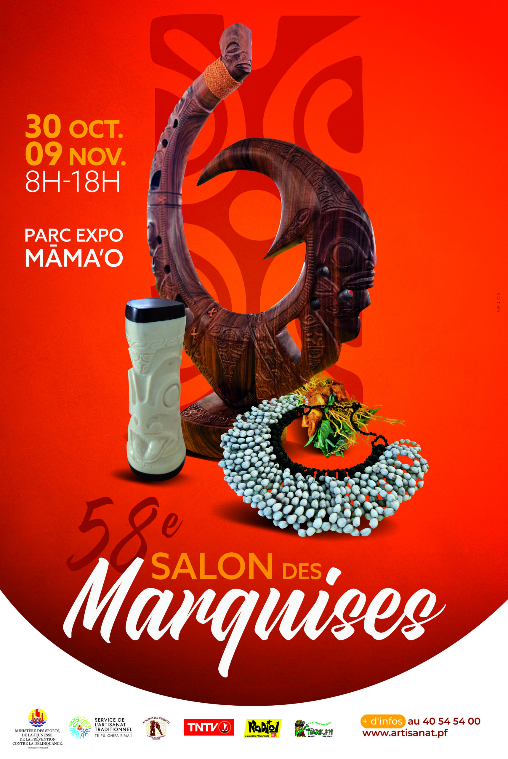 Organisé par la fédération Te Tuhuka o te Henua Enana, présidée par M. Marc Barsinas, le 58ᵉ Salon des Marquises se tiendra du 30 octobre au 9 novembre 2025 au Parc expo de Māma’o. Véritable vitrine du savoir-faire marquisien, cet événement incontournable rassemblera cette année quatre-vingt-huit artisans venus de l’ensemble de l’archipel.