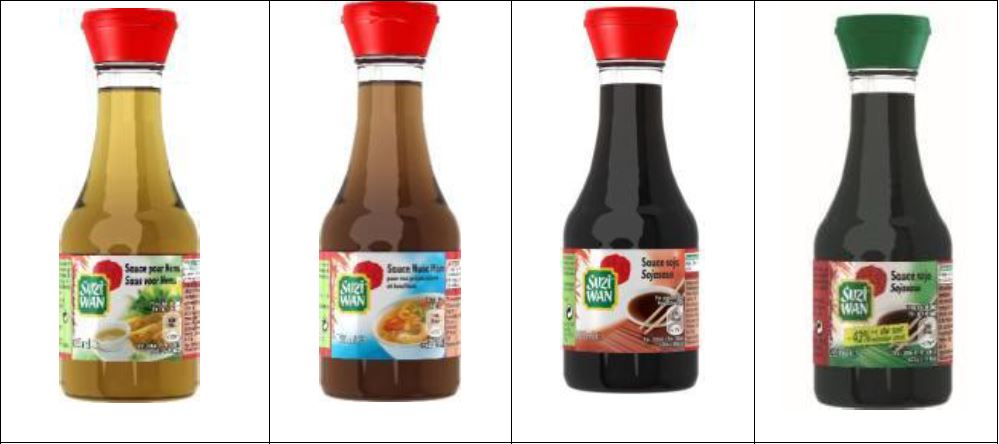 De source non officielle : sauce soja de la marque SUZI WAN appartenant aux lots suivants :