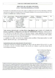 Vous trouverez ci dessous les avis n°19625 /MLF/DAF/SIAD du 27 octobre 2025 concernant le partage judiciaire par souche.