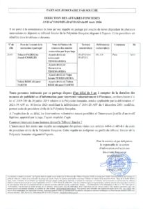 Vous trouverez ci dessous l’avis n° 5484 MFL/DAF/SIAD du 09 mars 2026 concernant le partage judiciaire par souche.