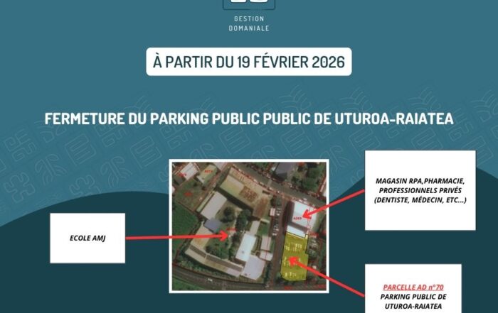 josleydaf2026-02-13T13:35:09-10:00𝐅𝐞𝐫𝐦𝐞𝐭𝐮𝐫𝐞 𝐭𝐞𝐦𝐩𝐨𝐫𝐚𝐢𝐫𝐞 𝐝𝐮 𝐩𝐚𝐫𝐤𝐢𝐧𝐠 𝐩𝐮𝐛𝐥𝐢𝐜 𝐚̀ 𝐔𝐭𝐮𝐫𝐨𝐚 𝐑𝐚𝐢𝐚𝐭𝐞𝐚 – 𝟏𝟗 𝐟𝐞́𝐯𝐫𝐢𝐞𝐫 𝟐𝟎𝟐𝟔josleydaf2026-02-13T13:35:09-10:00février 13th, 2026|