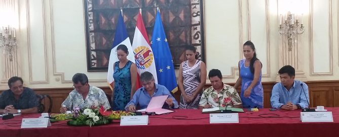 Dans le cadre du 10ème FED (Fonds Européen de Développement), le président de la Polynésie française, Edouard Fritch, a procédé, jeudi, à la signature de contrats de travaux d’assainissement de la ville de Papeete avec les sociétés attributaires. En présence notamment du maire de Papeete, Michel Buillard et du Président directeur général de la SEML … Lire la suite de le Président de la Polynésie française a procédé ce 15 juin à la signature des contrats de travaux pour l’assainissement de la ville de Papeete