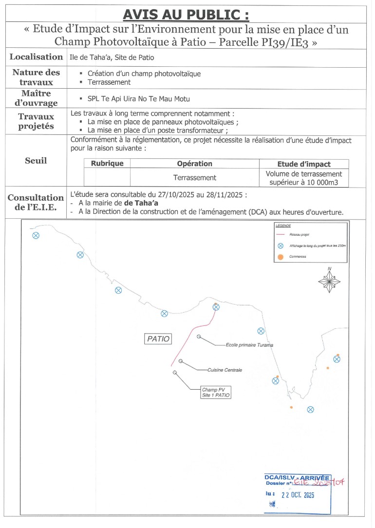 Published On: septembre 22nd, 2025Catégories : Études d'impactsIa Ora Na, Nous sommes ravi de vous informer qu’à partir du 10 septembre 2025 pour une durée d'un [ lire la suite ->]