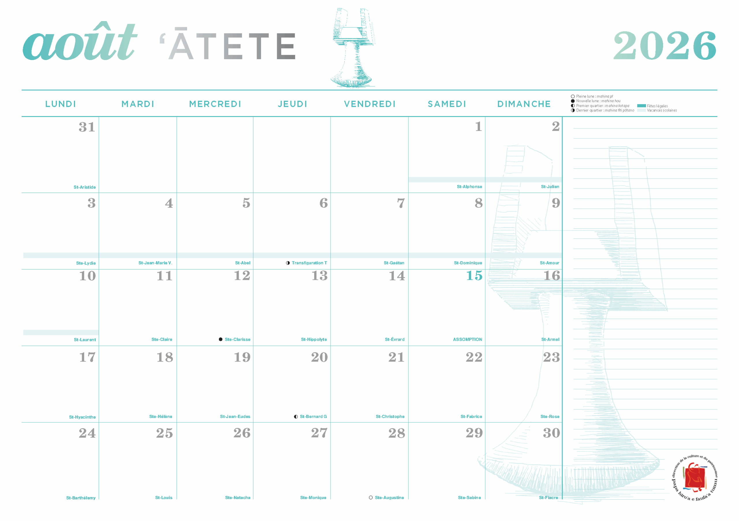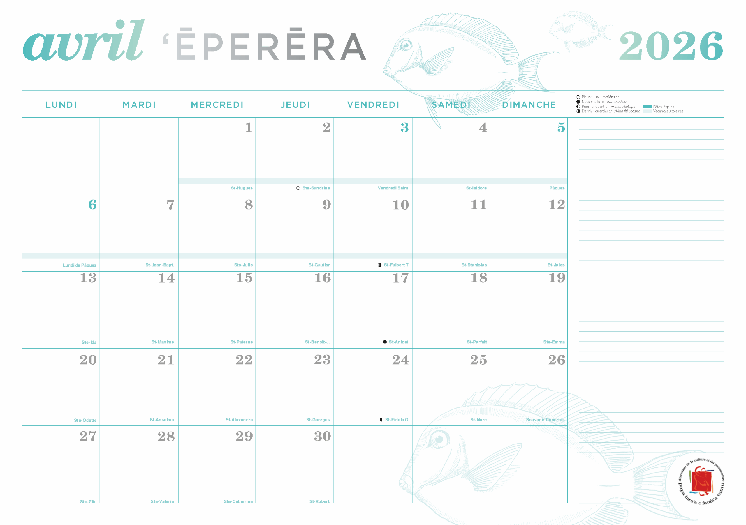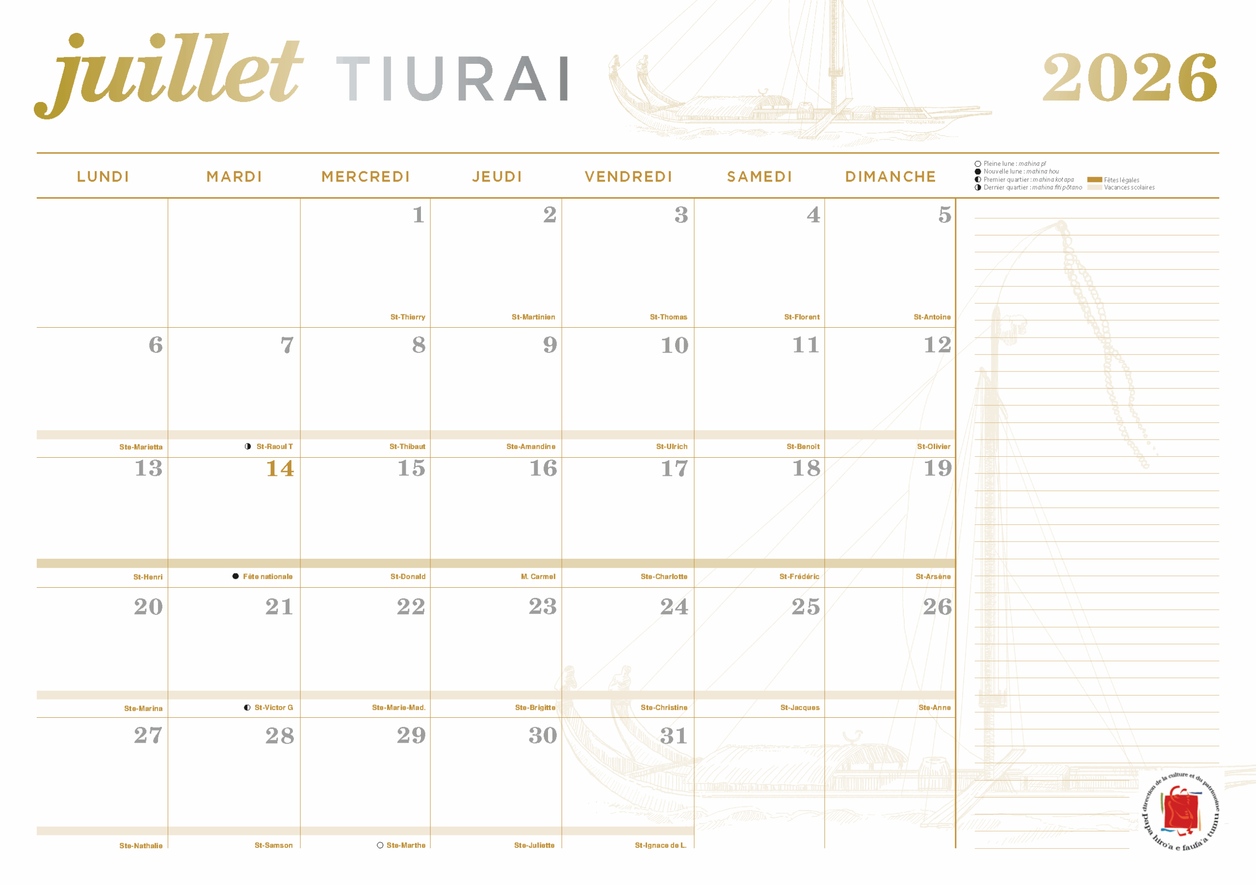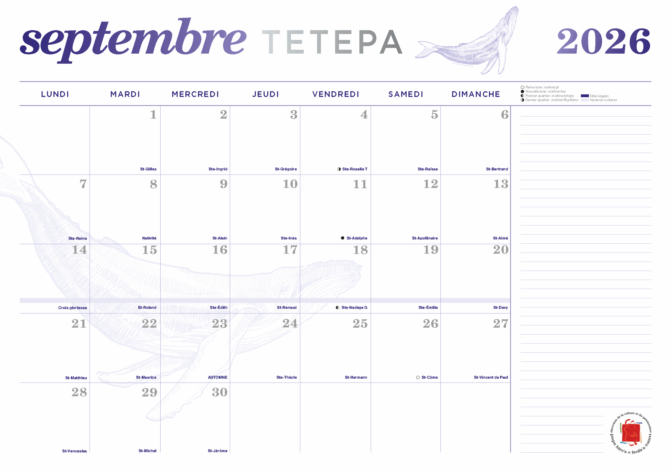 Calendrier 2026