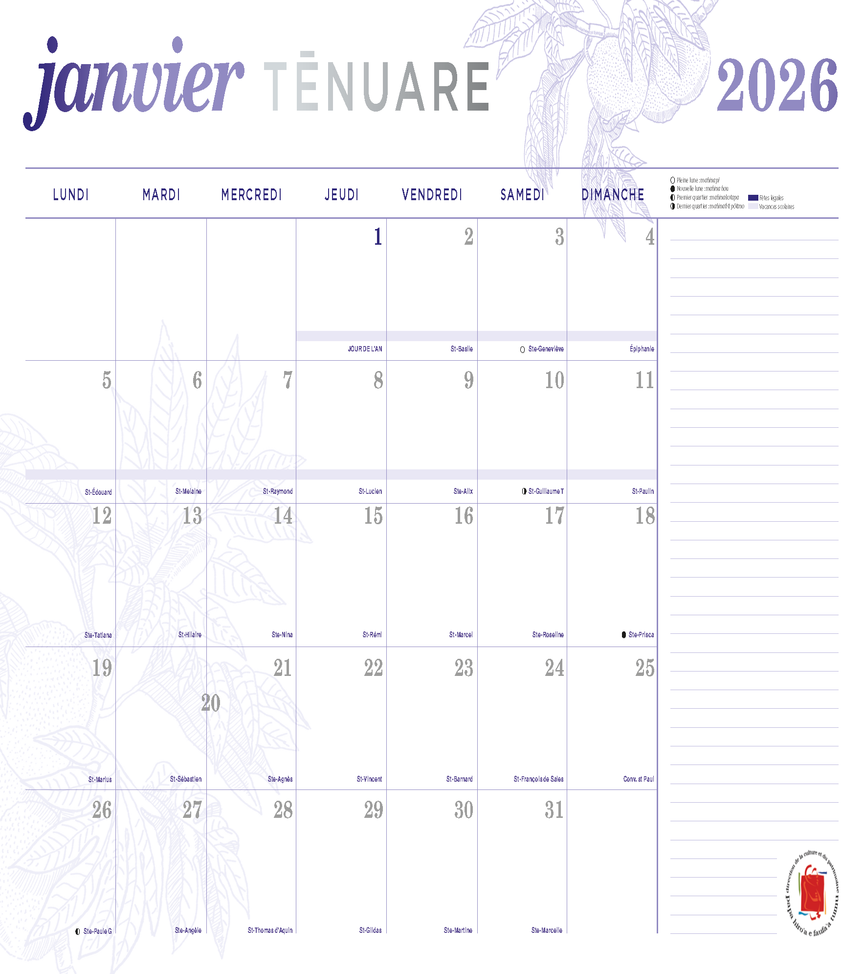 Télécharger le Calendrier 2026 au format PDF