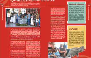 Te-Pua-Matāri'i : la tortue fabuleuse, symbole de fertilité et d'abondance (Hiro'a n° 218 - Février 2026) RENCONTRE AVEC GUILLAUME IOTEFA, SCULPTEUR ET ENSEIGNANT AU CENTRE DES MÉTIERS D’ART, ET JAMES TUERA, RESPONSABLE LOGISTIQUE À LA DIRECTION DE LA CULTURE ET DU PATRIMOINE. Texte : Lucie Rabréaud – Photos : ©DR Pour la [...]