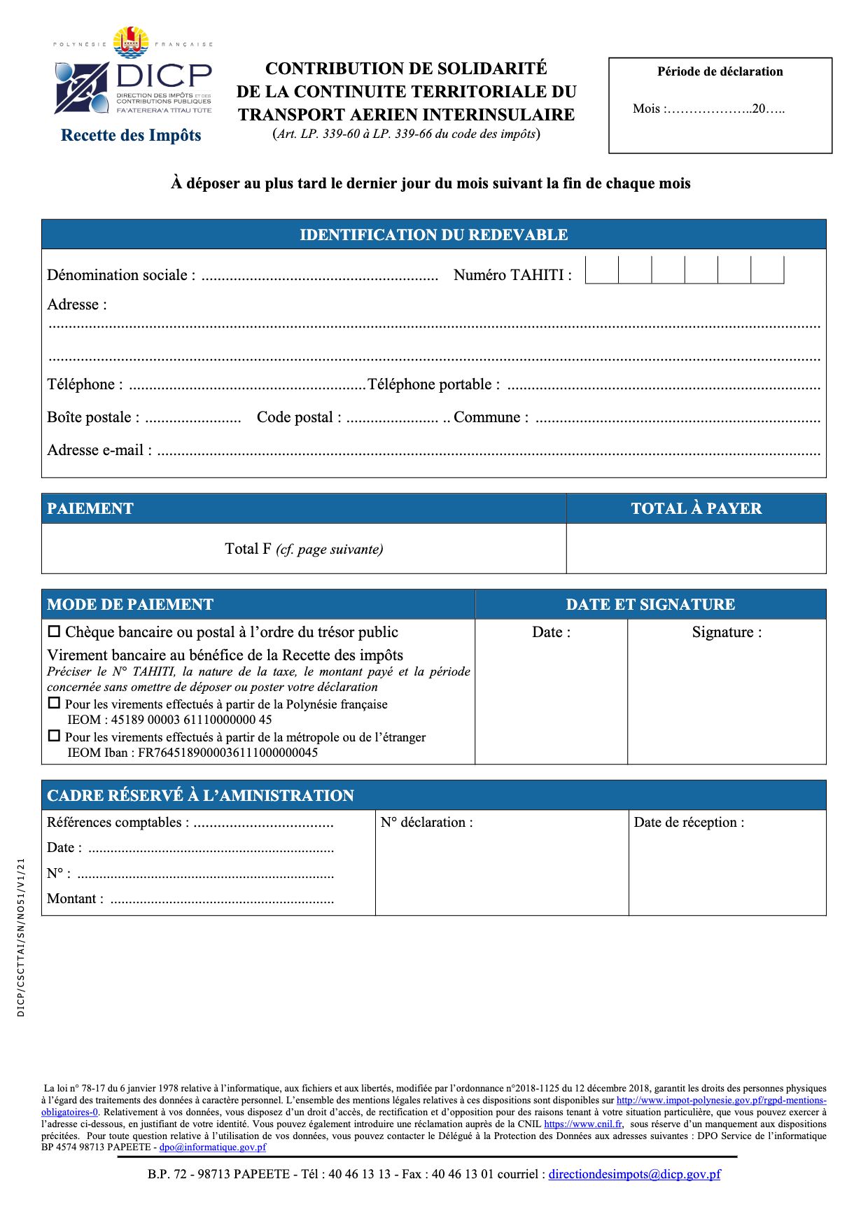 Formulaire de déclaration de la contribution de solidarité de la continuité territoriale du transport aérien interinsulaire