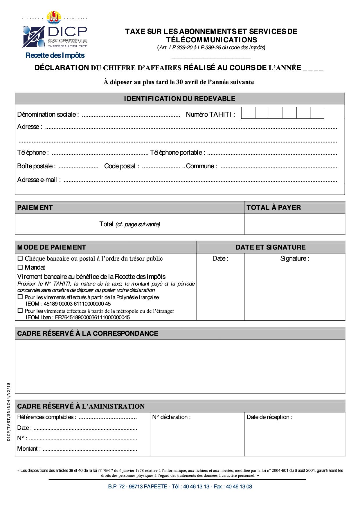 Formulaire de déclaration de la taxe sur les abonnements et services de télécommunications