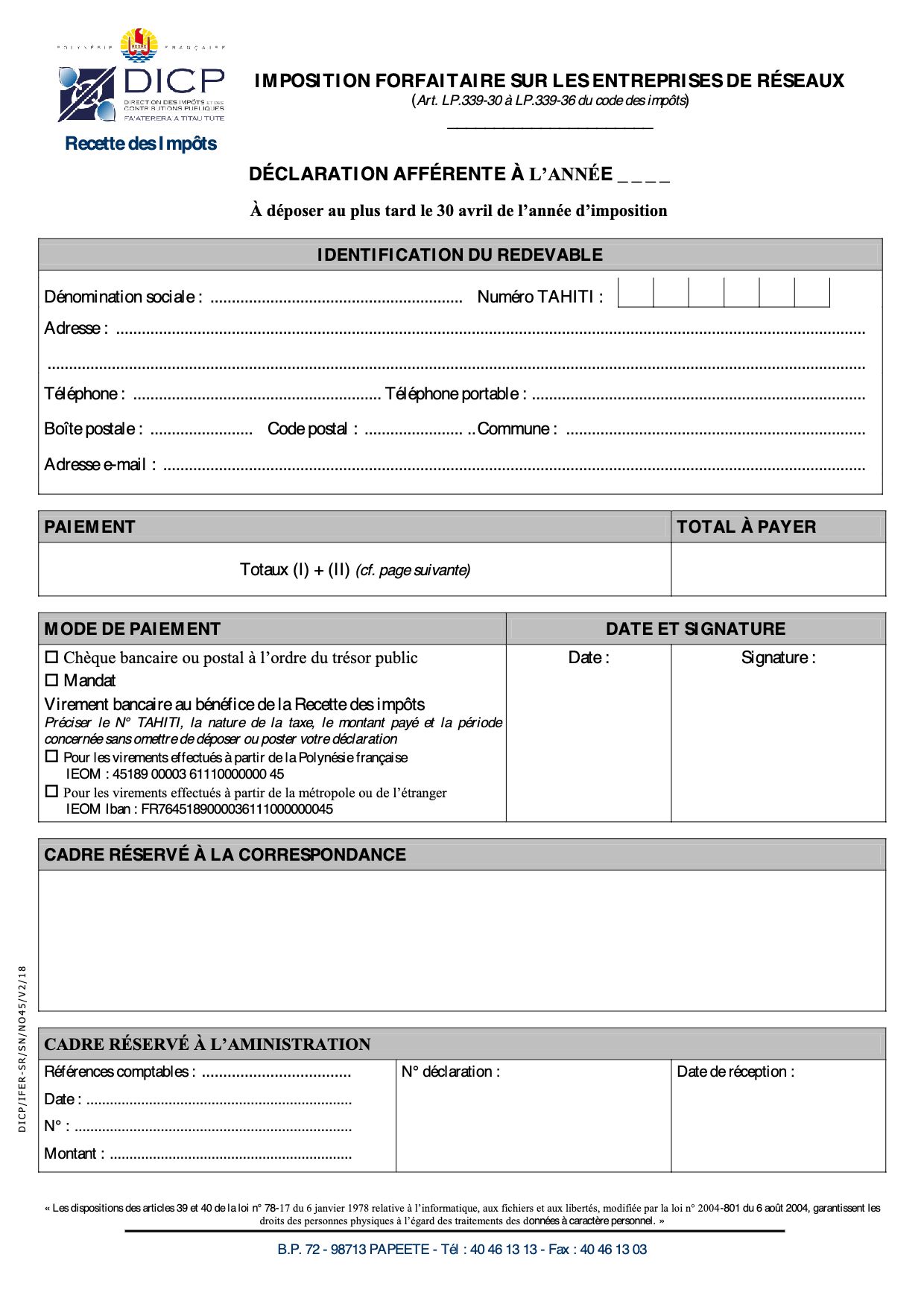 Formulaire de déclaration de l’imposition forfaitaire sur les entreprises de réseaux