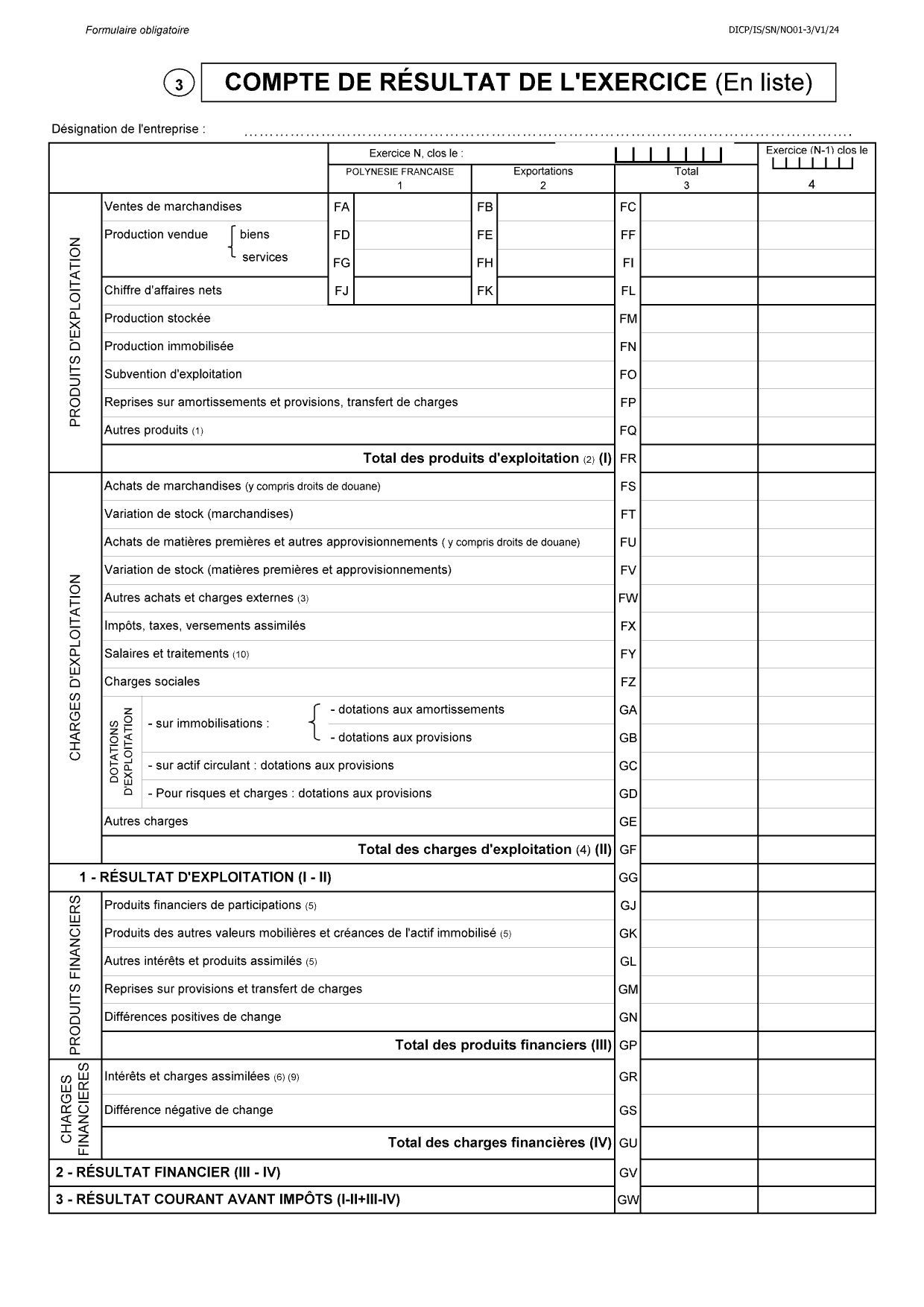 Tableau 3 : Compte de résultat de l’exercice (en liste)