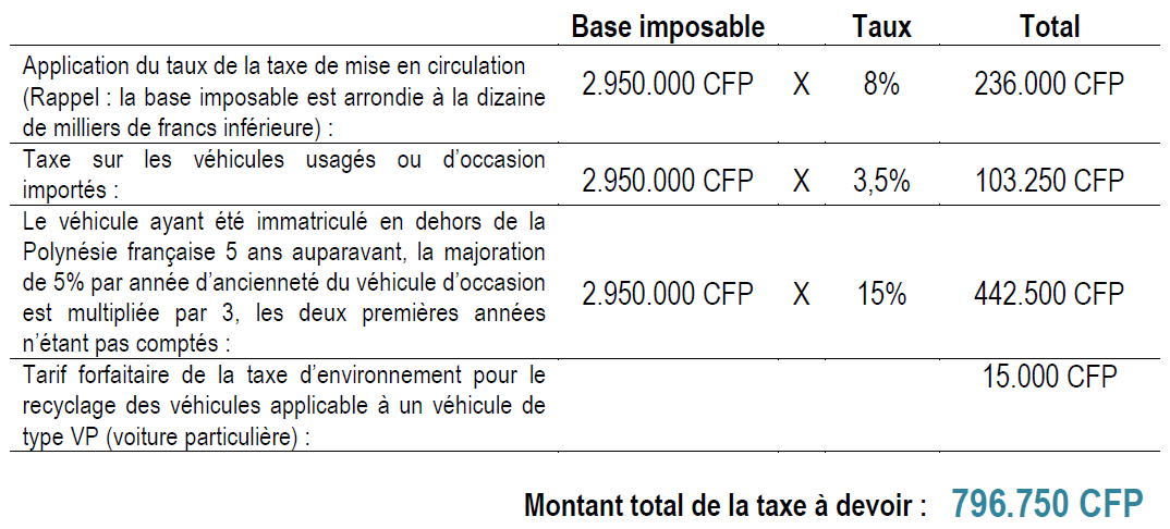 Il donne lieu à l’émission d’un avis d’imposition d’un montant forfaitaire de 200 000 F CFP payable à la Paierie de la Polynésie française.
