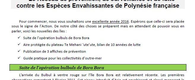 Newsletter Espèces envahissantes n°8 (décembre 2015)