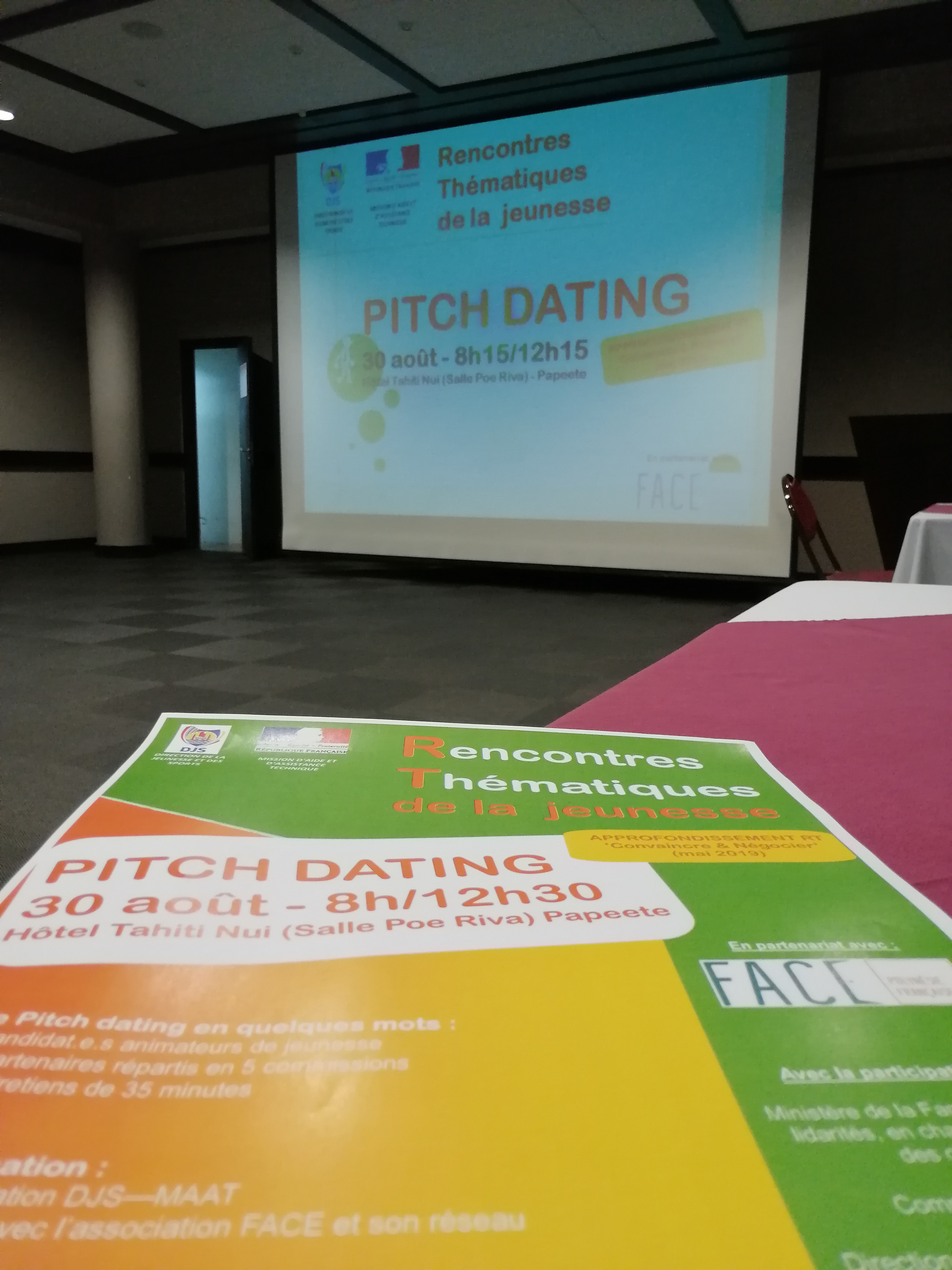 La rencontre thématique (RT) « pitch dating » s’est déroulé le vendredi 30 août à l’Hôtel Tahiti Nui (Salle Poe Rava) à Papeete. Un événement co-organisé par la Direction de la Jeunesse et des Sports (DJS) et la Mission d’Aide et d’Assistance Technique (MAAT), en partenariat avec l’association Fondation Agir Contre l’Exclusion (FACE).