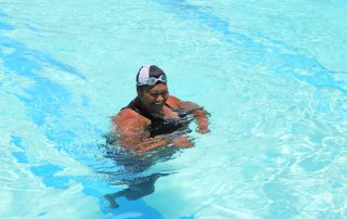 J’ai toujours aimé la natation et au vu de ma corpulence, l’eau me porte. Nous sommes les enfants du Pacifique ! Nous aimons l’eau et 45 minutes de natation, je trouve que c’est vraiment super.