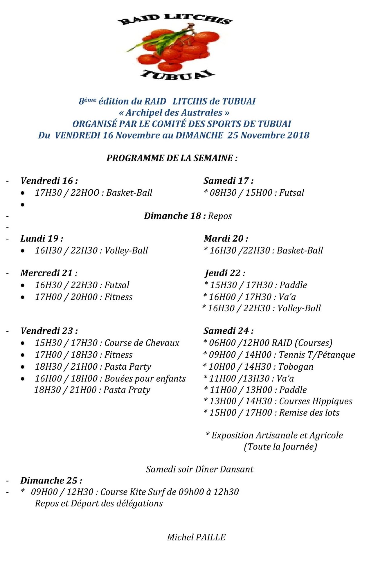 Programme du Raid Litchis Tubuai – 2018