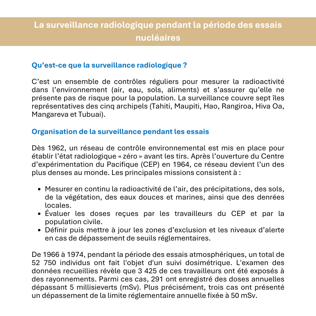 🔎 Quatrième fiche de la série pédagogique de la DSCEN sur la radioactivité en Polynésie française : La surveillance radiologique pendant la période des essais nucléaires👇