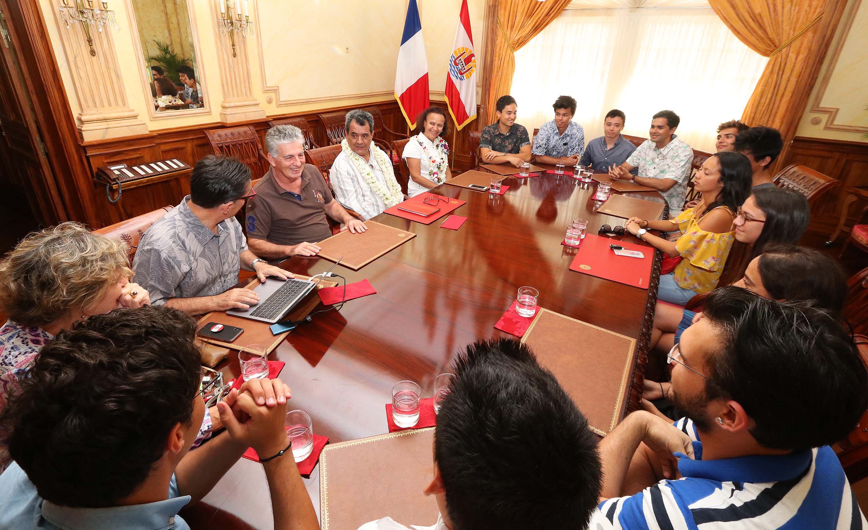 Les étudiants polynésiens qui suivent des études de médecine en France, en vacances au Fenua actuellement, ont été reçus, jeudi après-midi, par le Président du Pays, Edouard Fritch, pour évoquer leurs perspectives d’avenir.