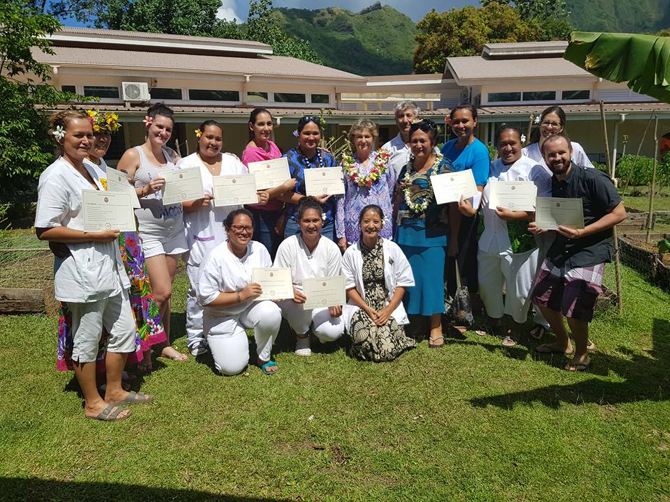 La Directrice de la Santé, Dr Laurence Bonnac-Théron, en présence de la représentante santé de la Commune de Moorea-Maiao, de 2 formatrices de l’IFPS, a remis jeudi matin les attestations d’accréditation à l’accueil et aux soins d’urgence aux 16 infirmiers et aides-soignantes de l’hôpital de Moorea ayant réussi le test après formation.