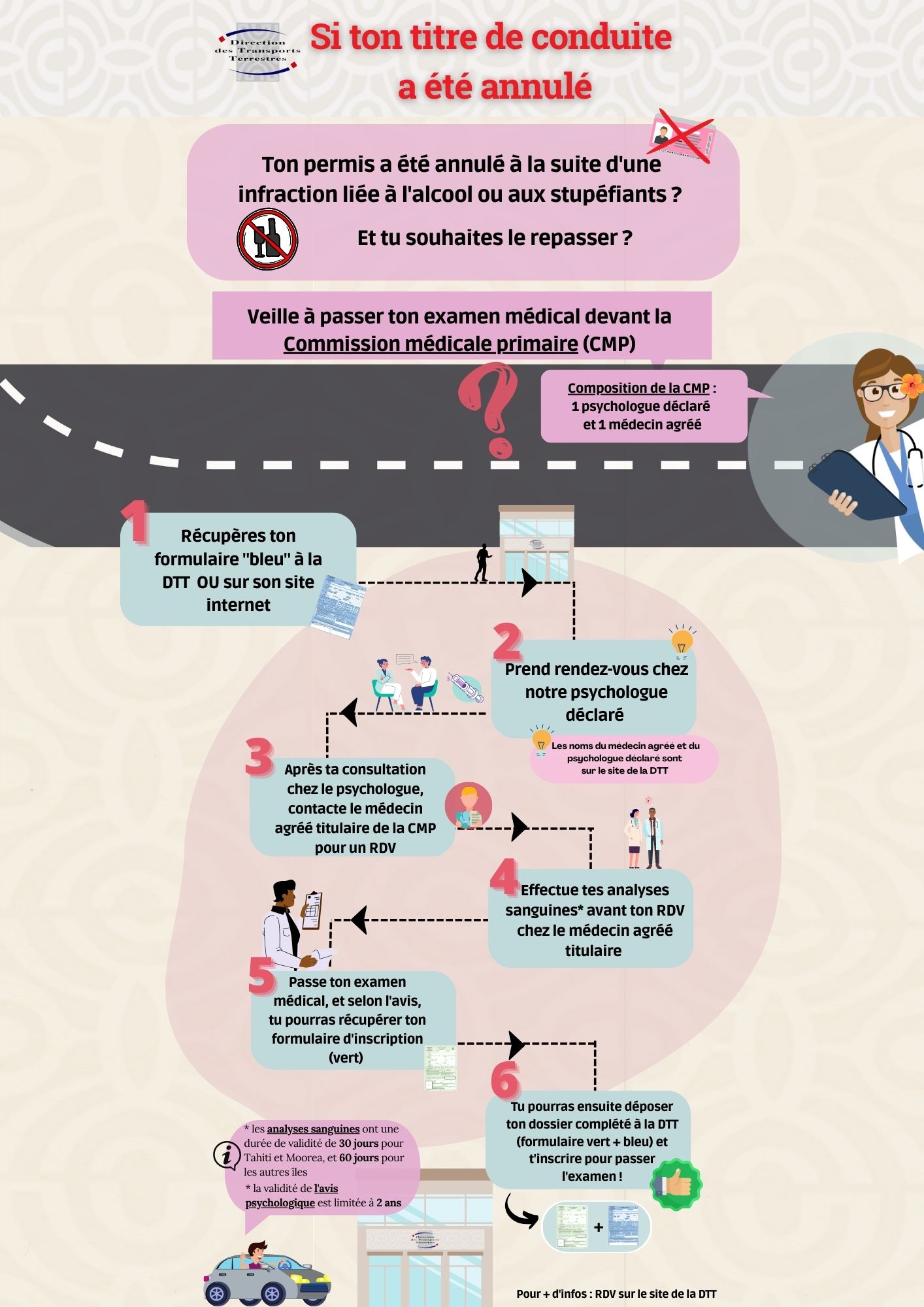 - Annulation : Votre permis est annulé définitivement. Vous devez repasser les épreuves du permis de conduire après un contrôle médical et un passage devant la commission médicale primaire.